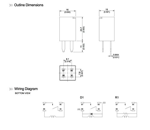 . 871Micro ISO automotive relay 1CSingle pole double throw CFlux tight R1Coil parallel with 12W resistor for 6V 180Ω12V 680Ω 24V 2700Ω U01High temp wire on the coil pre-tinned. Typically used in the automotive industry for sound and security installations. Song Chuan Micro Relay 871-1C-C-R1-12VDC.